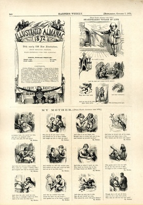 My Mother : die Zeichnung besteht aus 19 Bildern. Inschrift der Zeichnung: Th. Nast's Illustrated Almanac 1872. In 12 Bildern wird die Fürsorge einer Mutter für ihr Kind gezeigt / from Nast's Almanac for 1872
