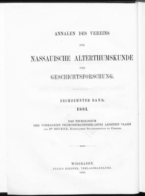 Das Necrologium der vormaligen Prämonstratenser-Abtei Arnstein an der Lahn