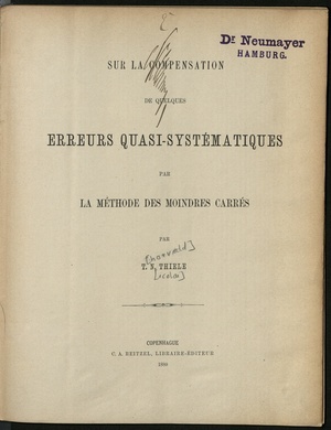 Sur la compensation de quelques erreurs quasi-systématiques par la méthode des moindres carrés / par T. N. Thiele
