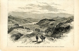 The capture of Tweed - the Bay of Vigo, Spain, and Fort San Sebastian : eine Darstellung der Bucht von Vigo in Spanien, wo Tweed verhaftet wurde / from a sketch by S. Newmarck