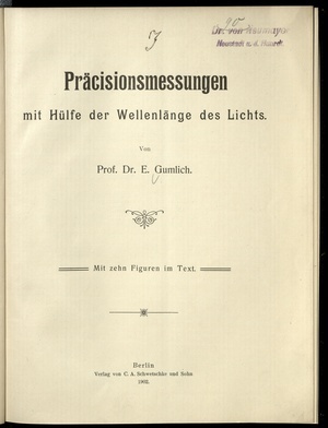Präcisionsmessungen mit Hülfe der Wellenlänge des Lichts / von E. Gumlich