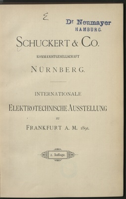 Schuckert & Co., Kommanditgesellschaft, Nürnberg, Internationale Elektrotechnische Ausstellung zu Frankfurt a.M. 1891