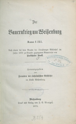 Der Bauernkrieg um Weißenburg anno 1525 / Balthasar Boell