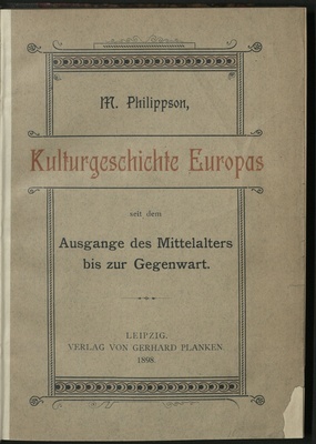Kulturgeschichte Europas seit dem Ausgange des Mittelalters bis zur Gegenwart / M. Philippson
