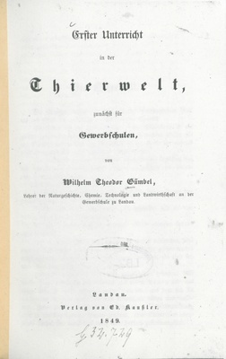 Erster Unterricht in der Thierwelt, zunächst für Gewerbschulen / von Wilhelm Theodor Gümbel