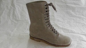 Beiger Damenstiefel aus Veloursleder.