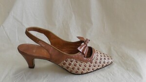 Brauner Riemenpumps mit Zierschleife und geflochtenem Blatt