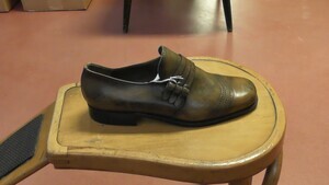 Eckiger brauner Herrenhalbschuh mit drei Schnallen
