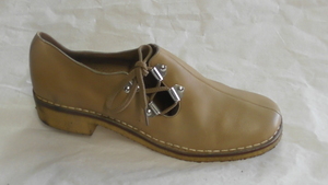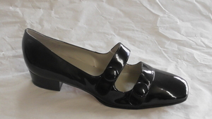 Riemenpumps aus Lackleder mit Knopfverschluss