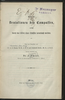 Ueber die Deviationen des Compasses, welche durch das Eisen eines Schiffes verursacht werden / von F. J. Evans u. Archibald Smith. Dt. bearb. von F. Schaub