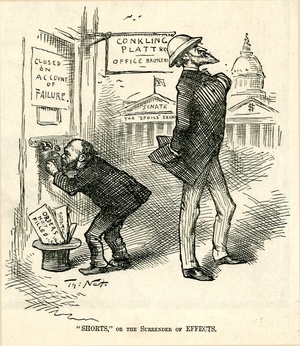 "Shorts", or the surrender of effects : Thomas Platt und Roscoe Conkling verlassen ein Büro und schließen es hinter sich ab / Th. Nast