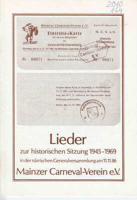 Eintrittskarte Mainzer Carneval Verein 1986 - Närr. Generalversammlung - historischen Sitzung 1945-1969
