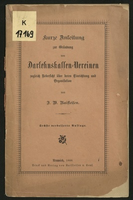 Kurze Anleitung zur Gründung von Darlehnskassen-Vereinen zugleich Übersicht über deren Einrichtung und Organisation / von F[riedrich] W[ilhelm] Raiffeisen
