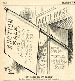 "By hook or by crook." The best thing to do, if it is to be a bar'l campaign : durch eine Fahne und Plakate am Weißen Haus wird angekündigt, dass dieses an den Meistbietenden versteigert wird / Th. Nast