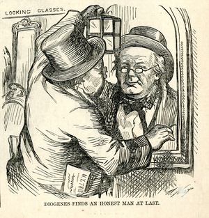Diogenes finds an honest man at last : Horace Greely betrachtet mit Hilfe einer Laterne sein Spiegelbild / Th. Nast