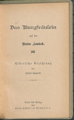 Burgfräulein auf der Ruine Landeck : historische Erzählung / von Julius Hugenell