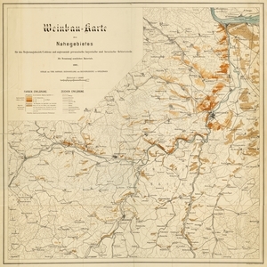 "Weinbau-Karte des Nahegebietes für den Regierungsbezirk Coblenz und angrenzende preussische, bayerische und hessische Gebietsteile. Mit Benutzung amtlichen Materials" - Weinbau an der Nahe