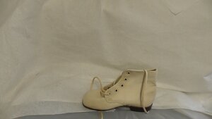 Weiße Kinderstiefel mit Ösenschnürung und Ziernähten