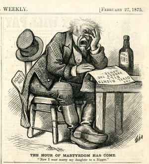 The hour of martyrdom has come. "Now I must marry my daughter to a Nigger." : ein Südstaatler bricht in Tränen aus als er liest, dass die Civil Rights Bill verabschiedet wurde / Th. Nast