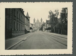 Foto der Basilika in Weingarten (Oberschwaben) am Ende einer Straße