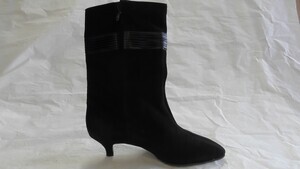 Schwarzer Damenstiefel aus Veloursleder mit gerafftem Zierband