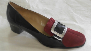 Schwarz-roter Pumps aus Lack- und Veloursleder