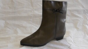 Brauner Damenstiefel aus geprägtem Leder mit Zierschleife