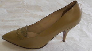 Hellbrauner Pumps mit Zierflechtungen und -lasche