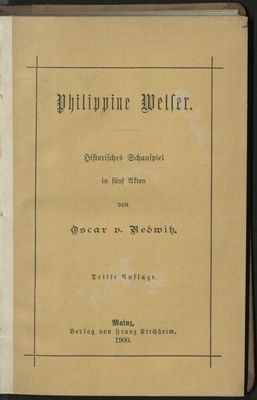 Philippine Welser : historisches Schauspiel in 5 Akten / von Oscar von Redwitz