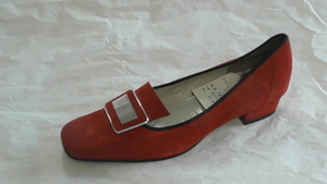 Roter Pumps aus Veloursleder mit Zierlasche