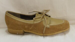 Eckiger beiger Kinderhalbschuh aus Veloursleder und Leder