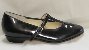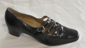 Eckiger schwarzer Riemenpumps aus Lackleder