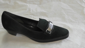 Dunkelgrüner Damenhalbschuh aus Veloursleder mit Zierkette