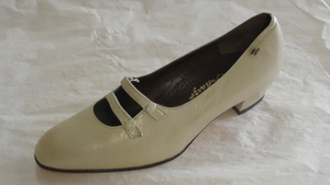 Weißer Pumps mit Zierriemen und -knöpfen