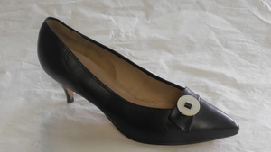 Schwarzer Pumps mit Zierschleife und Elastikband