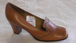 Eckiger brauner Pumps mit Zierlochungen
