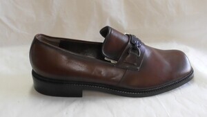 Eckiger brauner Herrenhalbschuh mit Zierkette.