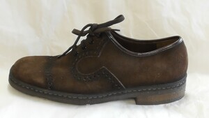 Dunkelbrauner Herrenhalbschuh aus Veloursleder mit Zierlochungen.