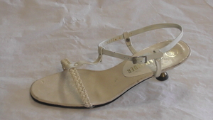 Weiße Damensandalette mit Zylinderabsatz