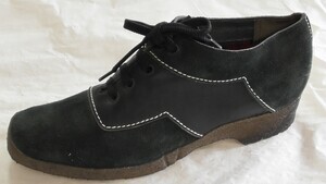 Dunkelgrüner Damenhalbschuh aus Veloursleder und Leder