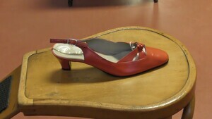 Roter Riemenpumps mit zwei verknoteten Riemen