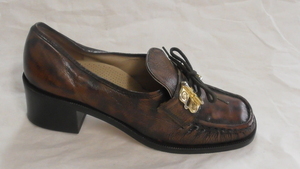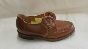 Spitzer brauner Kinderhalbschuh in Größe 28 mit Zierflechtungen