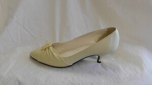 Weiße Pumps mit Zierschnalle und Raffungen