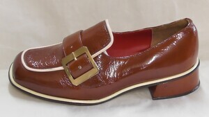Eckiger brauner Kinderhalbschuh aus Lackleder