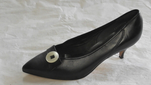 Schwarzer Pumps aus geprägtem Kunstleder mit Zierknopf