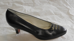 Schwarzer Pumps mit Zierriemen und -lochungen