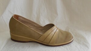 Hellbrauner Pumps aus Veloursleder und Leder mit Raffungen
