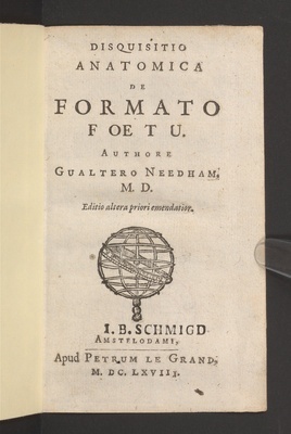 Disquisitio anatomica de formato foetu / authore Gualtero Needham