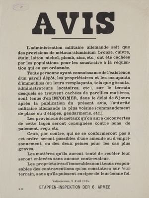Plakat in Haubourdin, Frankreich, 1917