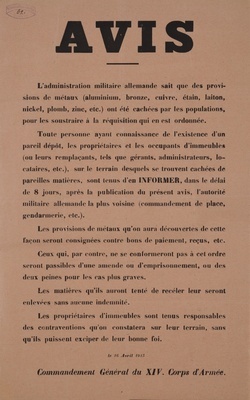 Plakat in Valenciennes, Frankreich, 1915